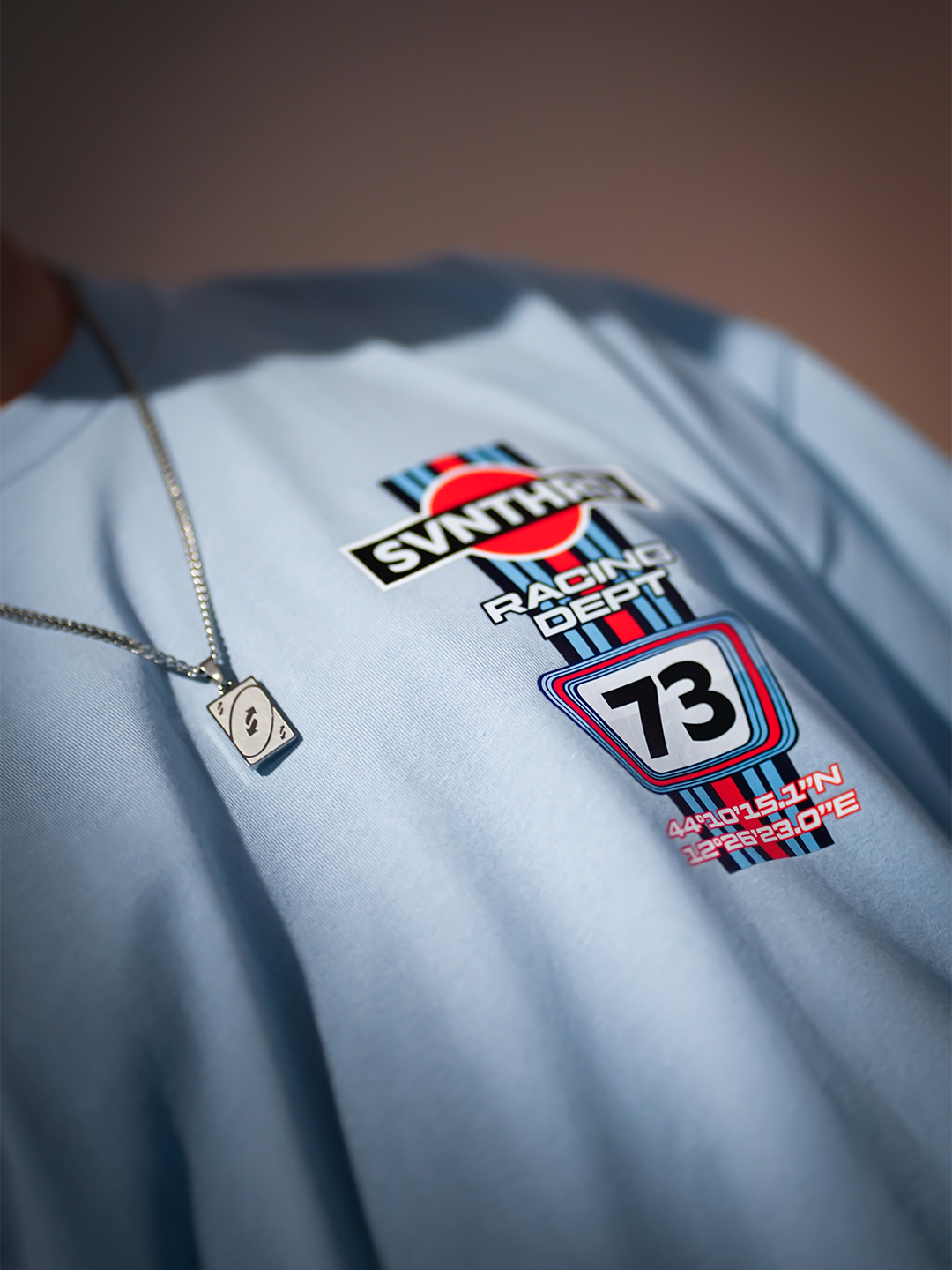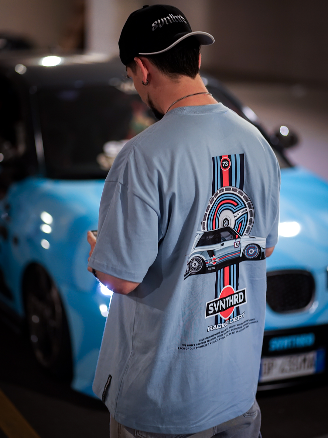 Omaggio alla sesta edizione del Seventhird Car Expo. Maglietta in colorazione Sky Blue, tecnologia DTF di alta qualità con colori vividi e lunga durata.