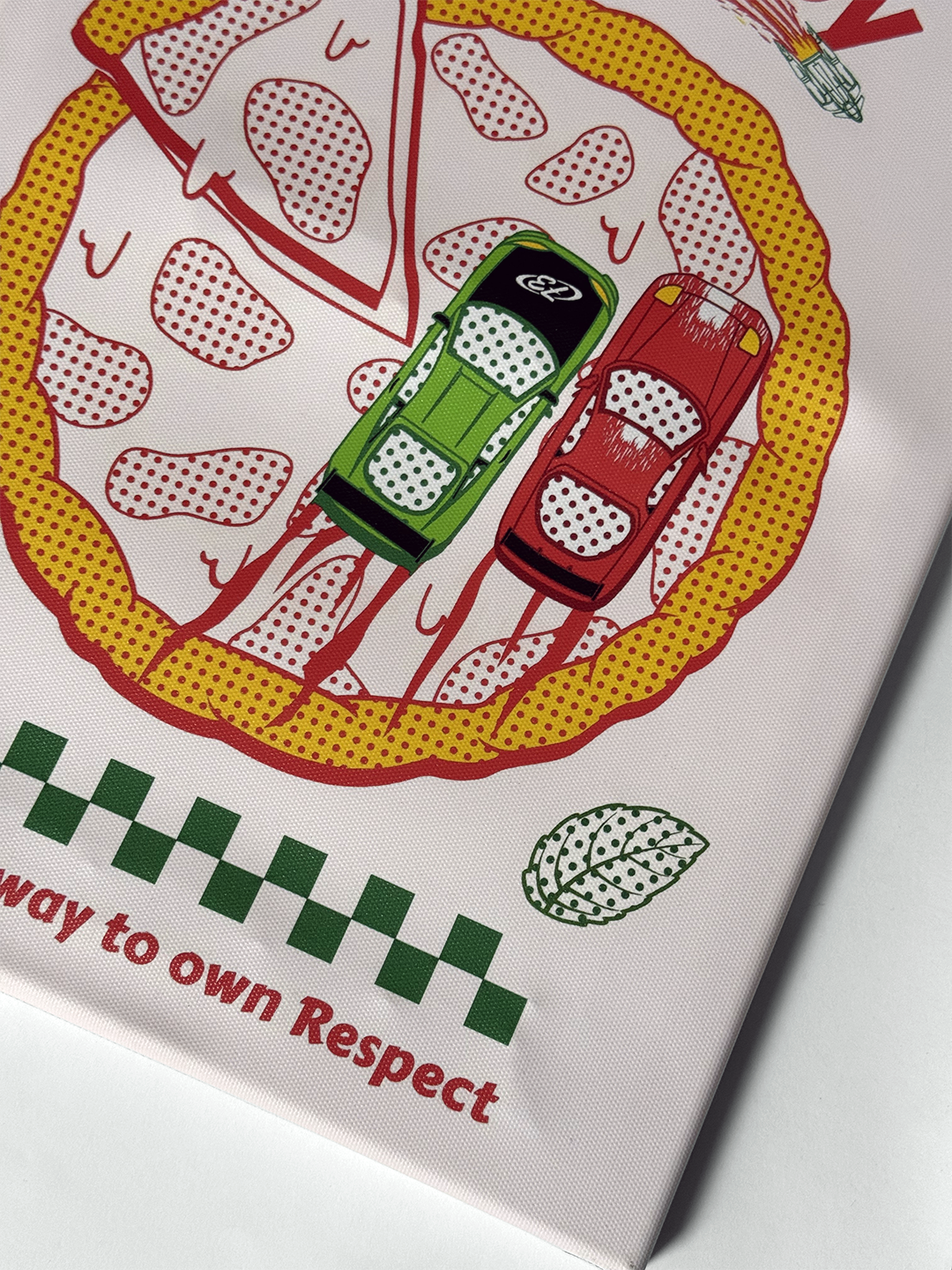 Canvas 1 of Kind con stampa Pizza Boy, per celebrare gli street racers che hanno fermato una strada a suon di Drag Racing e luci al neon. Nessuna replica